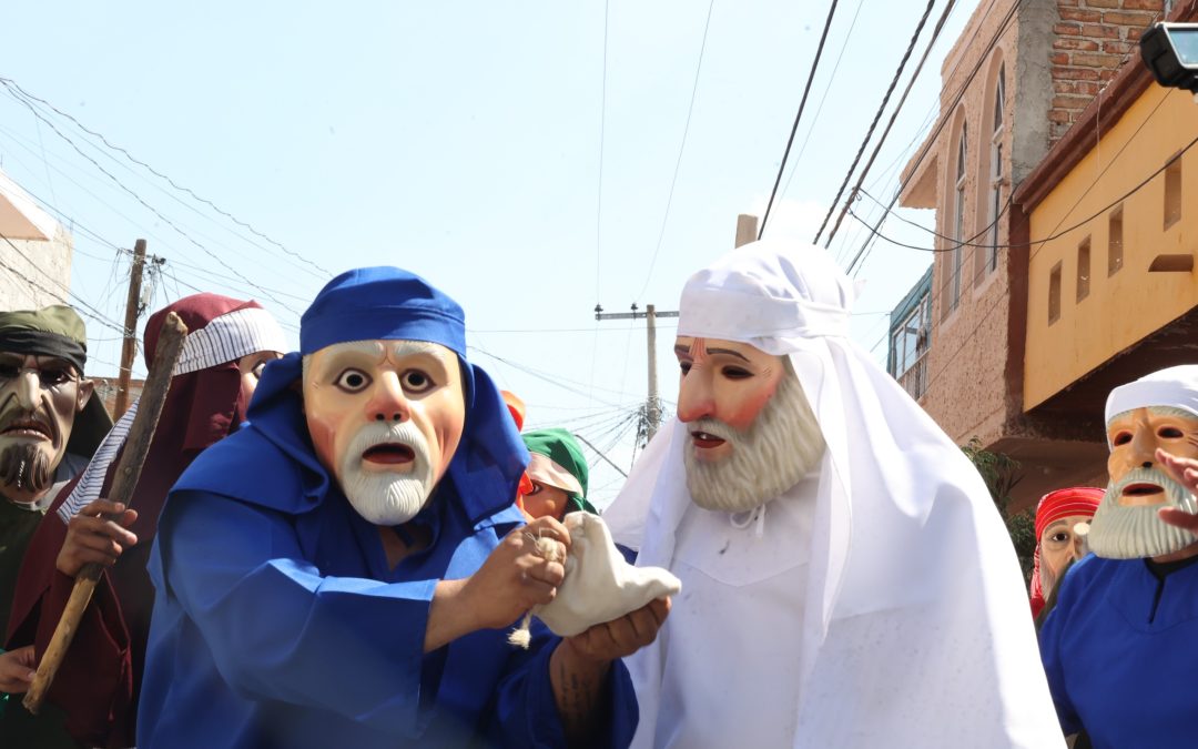 Roberto García Urbano, Presidente Municipal, estuvo con Los Judíos previo a su salida a las 3 de la tarde en Casa de la Cultura. Ellos, la agrupación de La Judea, ataviados ya con máscaras, vestidos de colores de vida, huaraches y el tradicional grito “¡uuuuuuu! empuñando fuerte el mando, salieron ordenados al ritmo que marcaron los soldados.