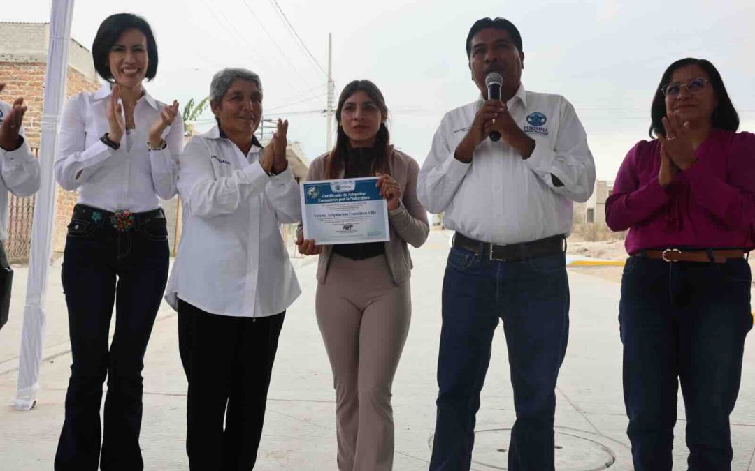 En la calle Veinte destacaron García Urbano y la Secretaria del Nuevo Comienzo, María del Rosario Corona Amador, que en temporada de lluvias, además de brindar mayor seguridad y condiciones dignas para las familias, generan impacto positivo en todo el municipio al favorecer la economía y la conectividad.
